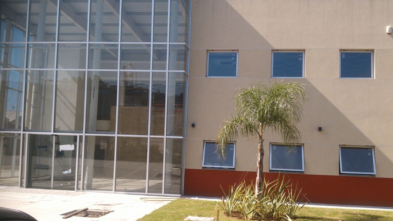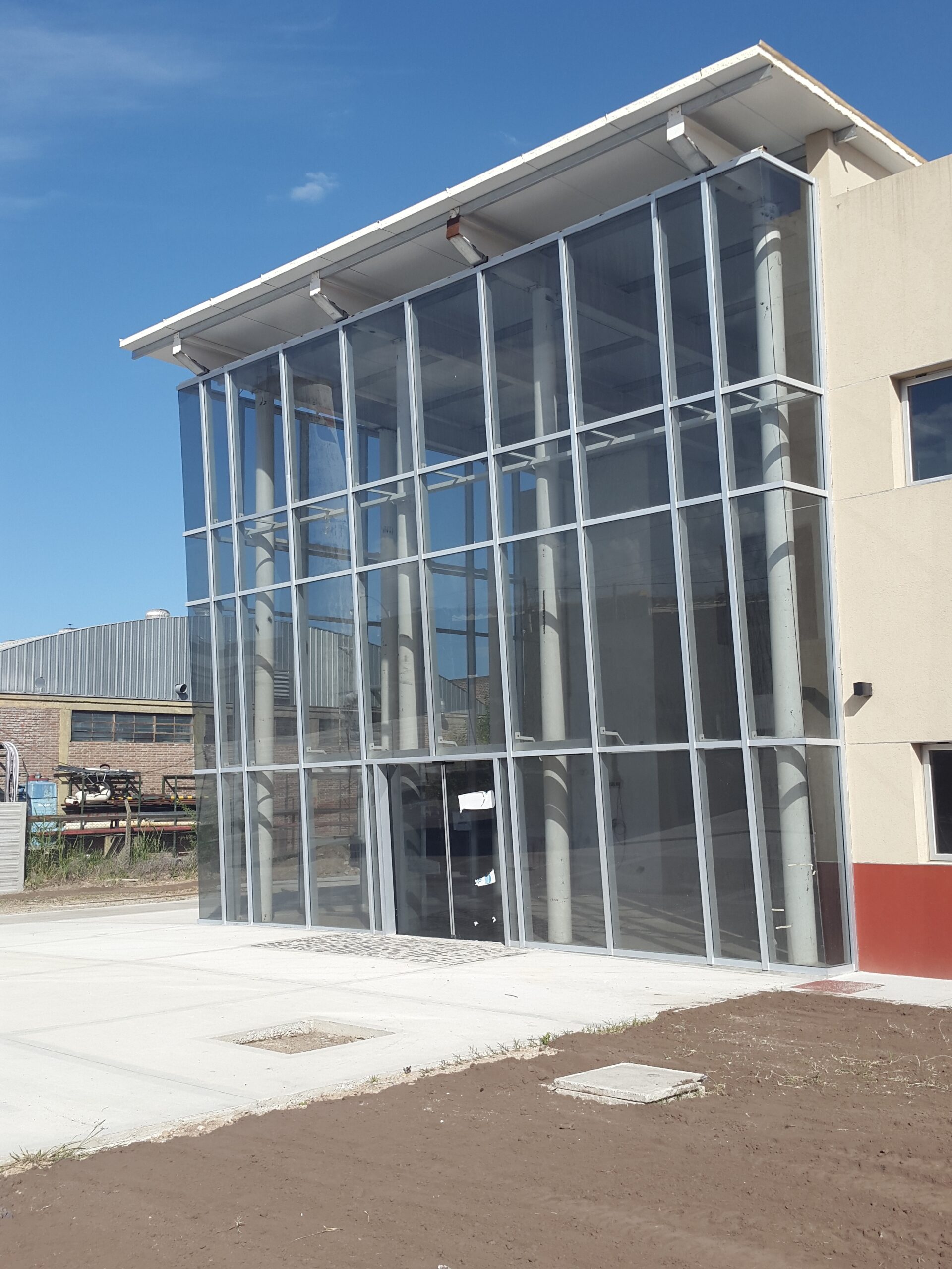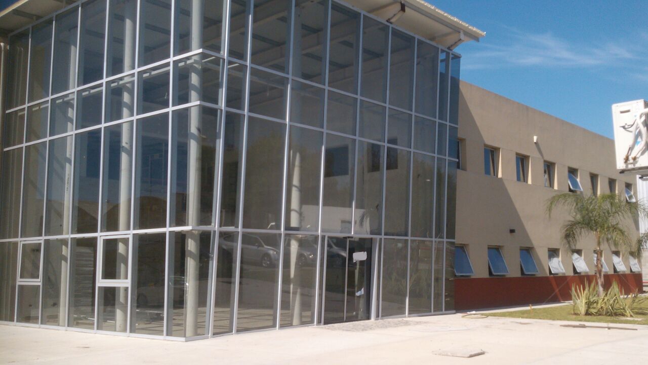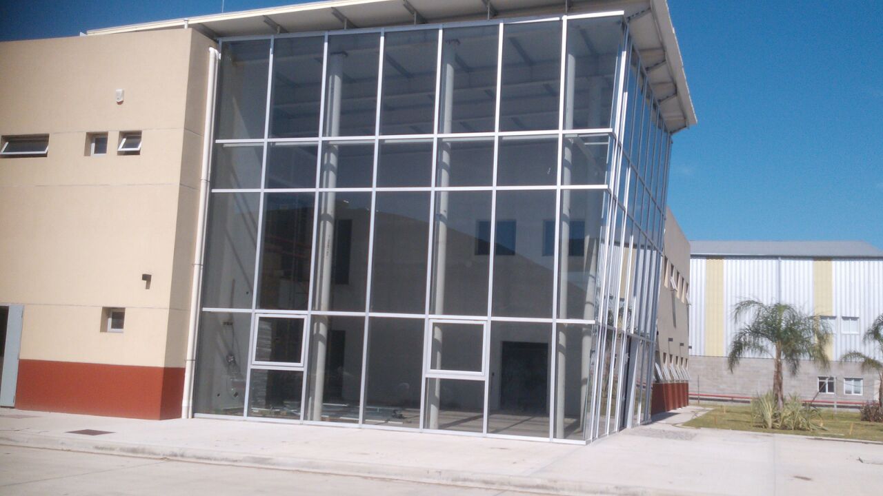 Estructura de aluminio y cristales laminados marca Blindex, con doble puerta automática